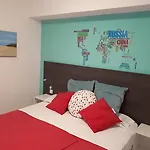 For your comfort, you will find an ironing set along with coffee/tea making equipment in each of the 12 rooms. A fridge, an oven, and a stovetop are also provided.